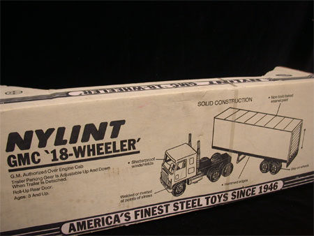 THIS IS A NYLINT HARLEY DAVIDSON LOGOED TRACTOR TRAILER KNOWN AS THE "BOX TRUCK" IT IS MINT IN THE ORIGINAL NYLINT BOX MY PICTURE DOES NOT DO IT JUSTICE BUT ALL LOGOING IS CLEAR AND BRILLIANT IN COLOR!ALL PLASTIC CHROME IS MINT AS IS THE WHOLE TRUCK!TRADITIONAL BLACK AND ORANGE WITH BAR AND SHIELD LOGOES ON TRACTOR AND TRAILER! MEASURES 21 3/8" X 6 1/8" X 5" WITH DETACHABLE TRAILER AND ROLL UP DOOR!GREAT PIECE FOR ANY HARLEY COLLECTION HARD TO FIND! THE ORIGINAL ISSUE DATE IS 1986.#99225-86V